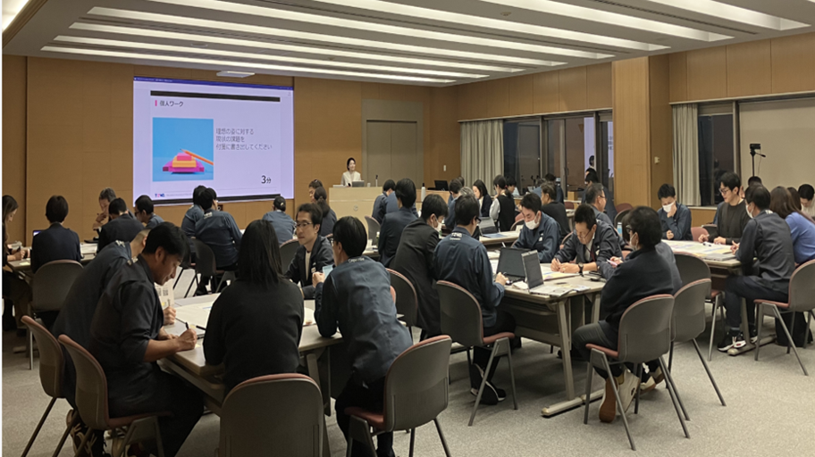 | As part of our health and productivity management initiatives, we held a “Self-Care Training” session with the cooperation of mental health professionals. Self-care is a mental health measure that involves recognizing and addressing one’s own stress. This training was conducted primarily through group work in groups of 5-6 people, fostering a friendly atmosphere for active exchange of opinions. By sharing concerns, participants were able to objectively face their own stress and consider their own coping methods, learning the importance of self-care and the basics of maintaining mental health. To help each individual become more aware of mental health and develop a habit of daily care, we will also provide follow-up through videos. We will continue to strive to create an environment where everyone can work energetically and authentically. Click HERE to read about our health management initiatives. |