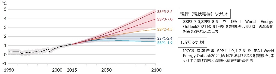 | 設定シナリオ | 1.5℃シナリオ | 現行シナリオ(現状維持シナリオ) |